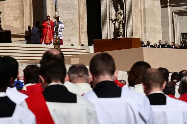 En cuanto a la misa, estuvo a cargo del cardenal Giovanni Battista Re, decano del Colegio Cardenalicio, quien se puso de pie ante miles de feligreses que se congregaron en los alrededores de la Basílica de San Pedro.