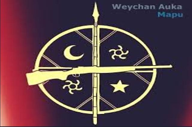 La referida pancarta corresponde a un lienzo firmado por el movimiento Weichán Auka Mapu.