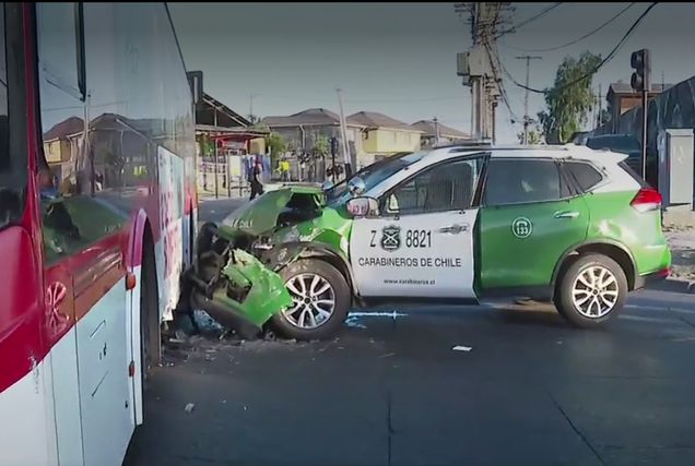 Pudahuel: grave choque entre patrulla de Carabineros  y bus urbano deja varios heridos, entre ellos dos carabineros. Los policías fueron trasladados de urgencia al hospital institucional. Los civiles fueron derivados vía SAMU a centros de urgencia.