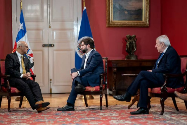 Durante la mañana de este miércoles, el presidente Gabriel Boric sostuvo un encuentro en el Palacio de La Moneda con Albert R. Ramdin, secretario general de la Organización de Estados Americanos (OEA).