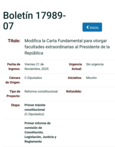 Silenciosamente, el viernes 21 de noviembre, bajo el número de boletín 17989-07 ingresó a la sede del poder legislativo un proyecto de ley de reforma en la Constitución que permitiría al Presidente de la República disolver el Congreso Nacional.