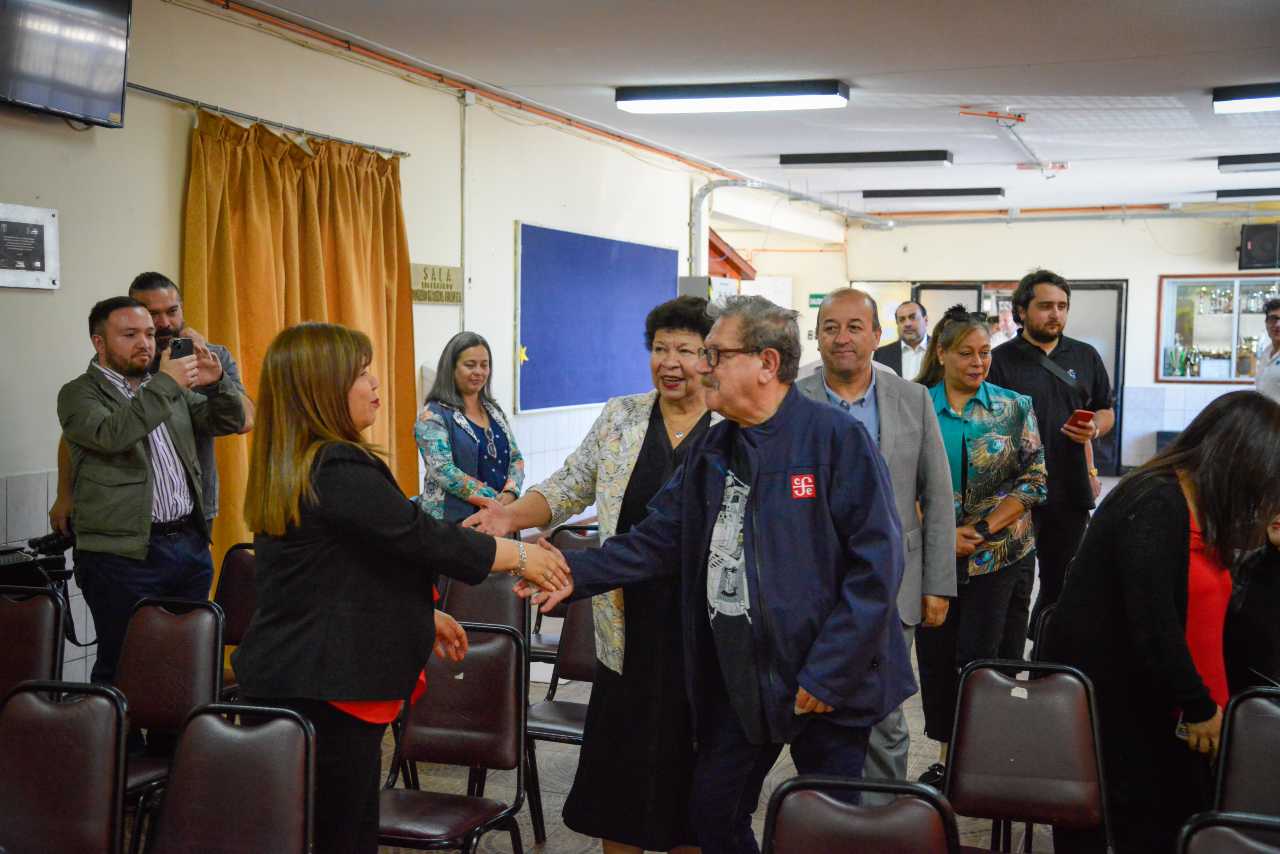 La ceremonia de entrega se llevó a cabo en el establecimiento educativo y reunió a importantes figuras, entre ellas, Paco Ignacio Taibo II; Rafael López Giral, director del Fondo de Cultura Económica en Chile; Mauricio Inostroza, administrador municipal de Talcahuano; la directora de la Escuela México; María Pedreros, presidenta del Centro General de Padres; el director (s) del Daem; e integrantes de la comunidad educativa.
