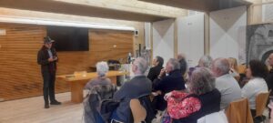 El día 22 de enero, el encuentro se funde entre poesía y la academia. Comenzó con una visita por el histórico edificio de la Facultad de Filología de la Universidad Complutense de Madrid en la Ciudad Universitaria. Desde el hall de entrada, al paraninfo, nos impregnamos de pensamiento, arquitectura y resistencia, y un inspirador recital poético en el “Aula Histórica Américo Castro”, con Marifé Santiago, Abdul Hadi Sadoun y José Manuel Lucía Megías, todos poetas de la propia universidad, integrantes del grupo de investigación ‘Poéticas de la Modernidad’.